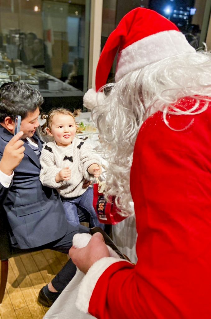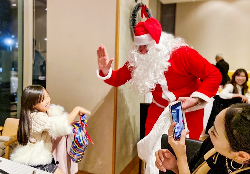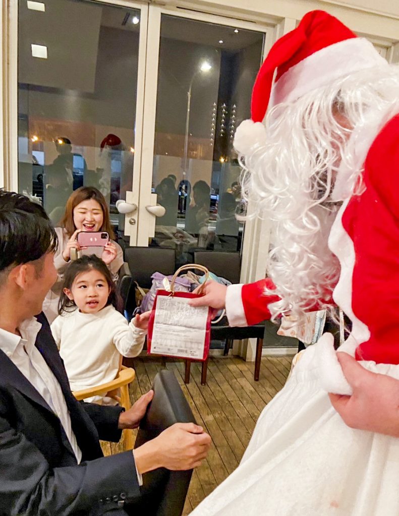 続けてグレイアム扮するサンタクロースから子供達へお菓子のプレゼントがありました。