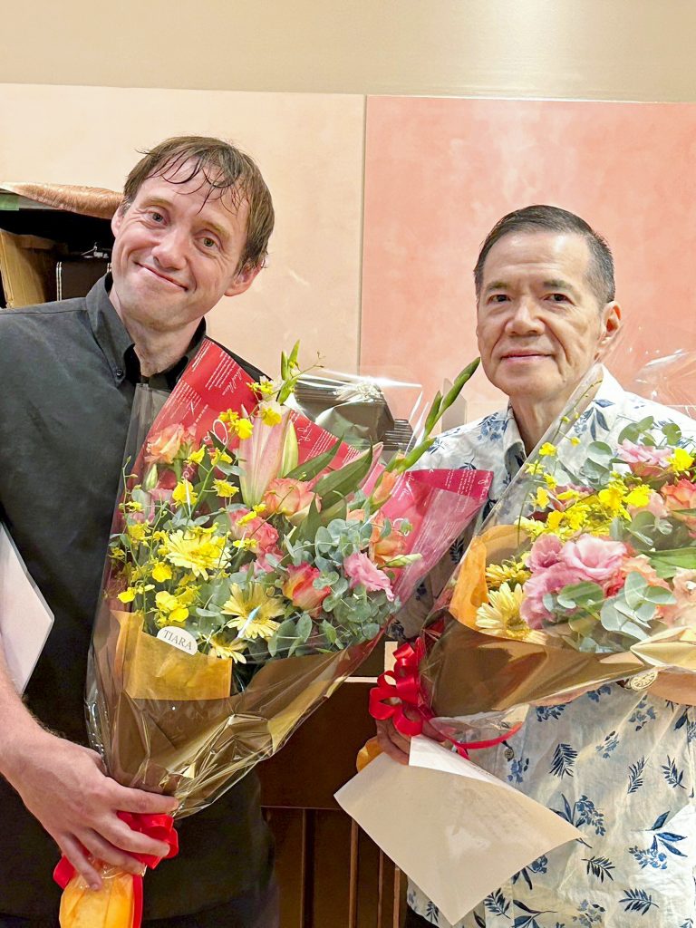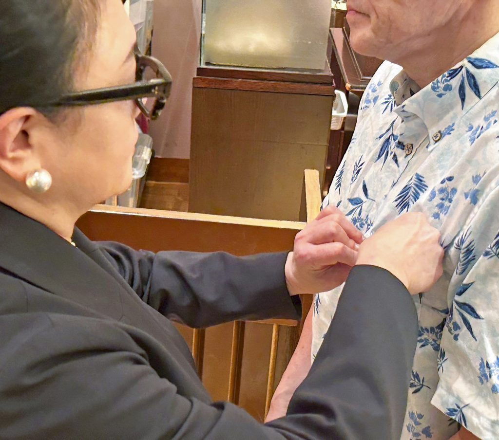 宣誓後にダイヤモンド松本より会員バッジの授与と